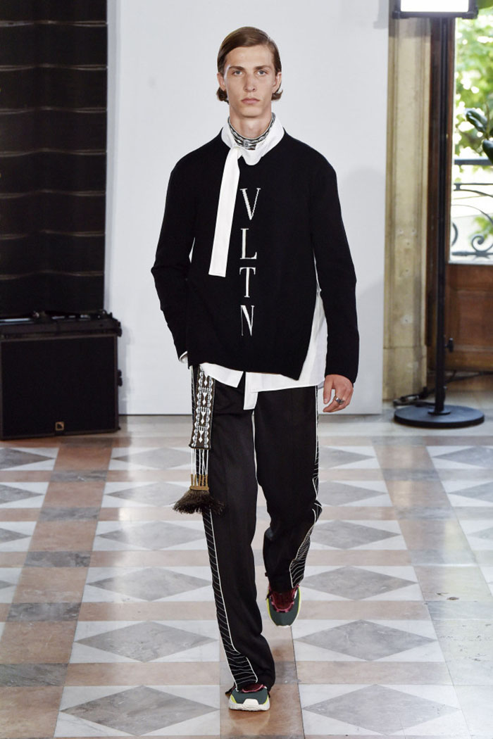 Pierpaolo Piccioli’s spring collection for Valentino was all about self-expression. Strongly influenced by streetwear and sports, the lineup was rich in craftsmanship and personalized details, and strikingly poor in traditional sartorial options: there was not a single suit in sight.