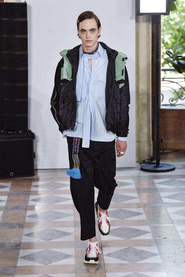 “It’s sport meets craft. It’s very human in the way it’s done, but it’s kind of collective in the look,” the designer said. “I wanted to get the idea of different cultures mixing together into one whole world, because there is no reason to have barriers, either mental or physical.”