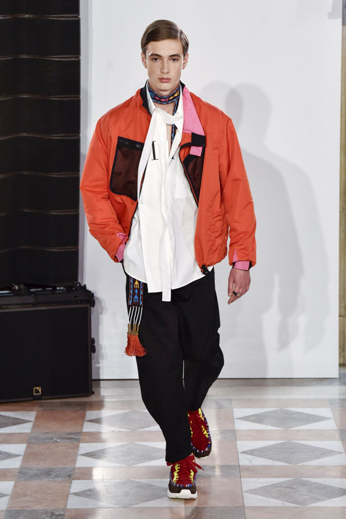 “It’s sport meets craft. It’s very human in the way it’s done, but it’s kind of collective in the look,” the designer said. “I wanted to get the idea of different cultures mixing together into one whole world, because there is no reason to have barriers, either mental or physical.”