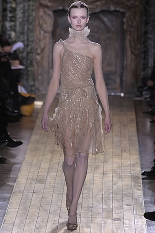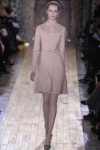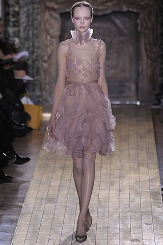 Fashion designer Piccioli’s somewhat opaque words actually helped to explain the paradox of the Valentino s/s 2011 collection: how something so blatantly pretty, pale, and light could also feel like it had an irresistible germ of, if not subversion, then at least oddness. It wasn’t just the penitent hair and makeup, or Freja’s opening outfit, in all its vestal virginity. Chiuri said there was a secret in the collection, in the way the pleats fell, the way the sheer fabrics seemed about to reveal something while keeping it hidden. That secret was presumably the girl inside the clothes. If she was covered up, she wasn’t demure. The fashion models walked with a diffident hauteur, hardly innocent.