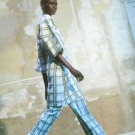 “It’s very considered but looks very natural,” as she put it. That was true for casual dresses that looked quite sporty from the front, only to reveal D-rings with long, formal grosgrain ribbons running down the back, suggesting a ballroom silhouette. Or the orange and black dresses vaguely imbued with memories of swimwear in sculpted cut-outs.