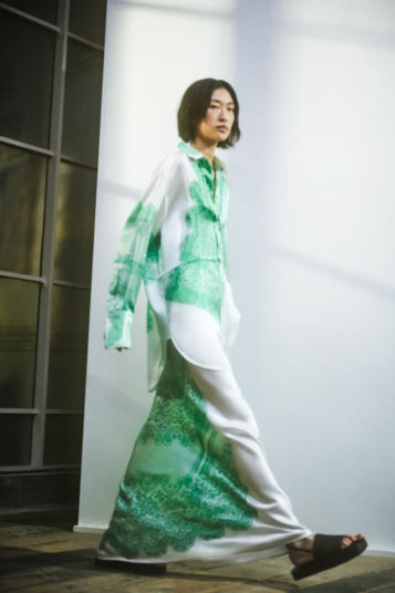 It was nice to see that a restructure won’t stand in the way of that, either. Here, silk dresses printed with images of other dresses created optical illusions—with slimming effect.