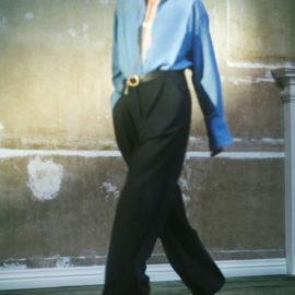 “The oversized chambray shirts feel quite David, with a loose-fitting pant and a beautiful belt. You wanna be that person,” she said. “David always dresses. He always makes an effort. When we’re on holiday in Europe, he has a very pulled-together look, and I want to wear those pieces as well. It’s a shared suitcase.”