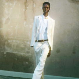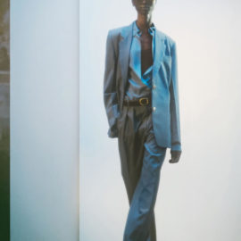 It was clear in the instant gratification this collection offered in the tailoring she credited to her husband, but also in more subversive propositions like a (very elevated) string vest styled with a gold chain, which Beckham attributed to Ray Liotta. “There’s something a little Goodfellas there.”