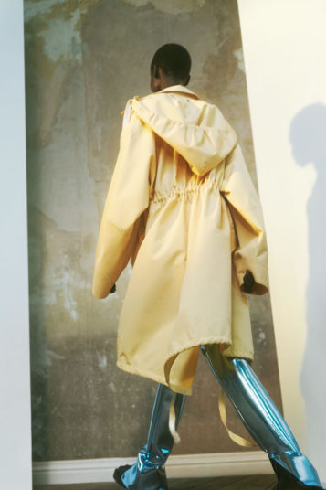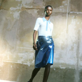 A pair of metallic bonded scuba jersey trousers looked like mercurial silver armour, and came in a knee-length skirt manifestation, too—her new hemline. They read like something out of a TLC video: a major compliment, but certainly not for the faint of heart.