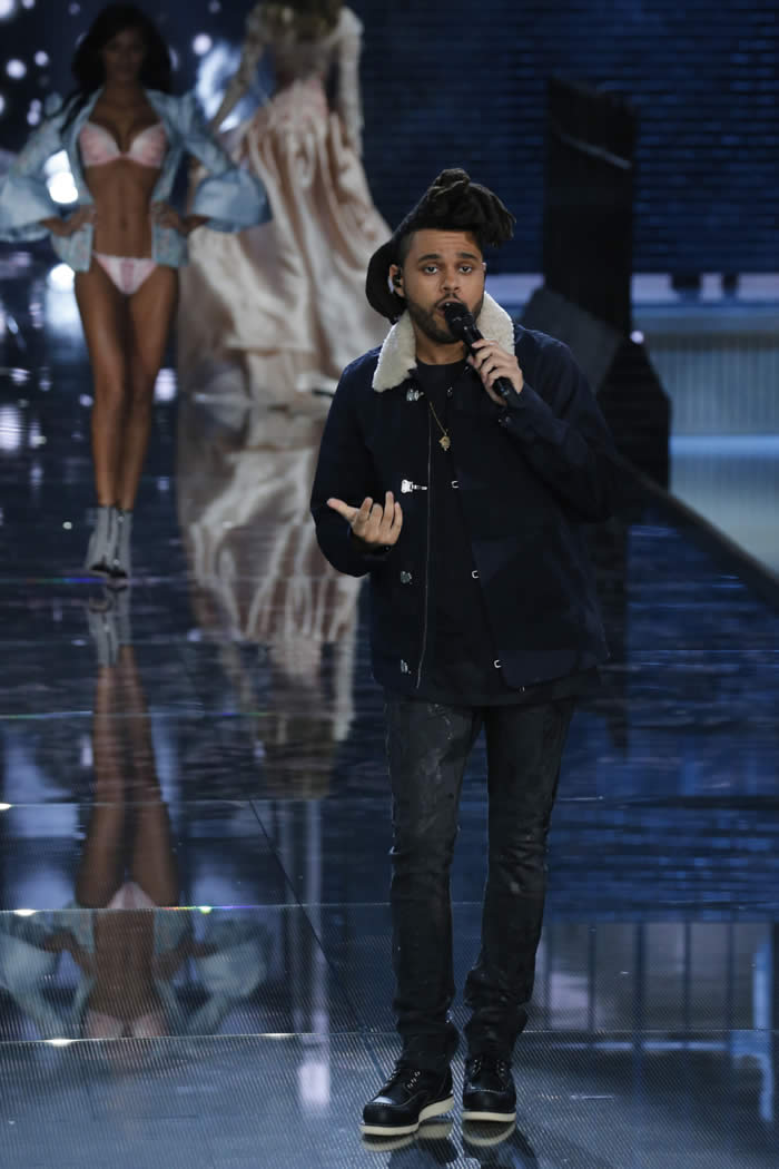 Ellie Goulding, who replaced Rihanna at the last minute, The Weekend and Selena Gomez all took to the stage to sing as the models sashayed past them.