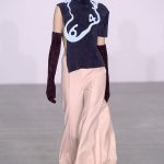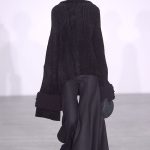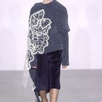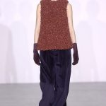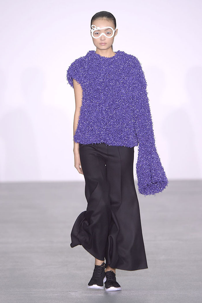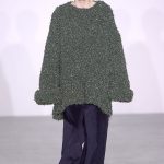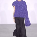 Xiao Li, who in November was named the Mercedes-Benz China Designer Award winner, is another London-based designer who is pondering the unrelenting pace of the fashion industry. Li, who’s making a name for her sculptural, inventive knitwear, said in her show notes that she wanted to address “the feeling that there is no time for young designers to incubate and develop their ideas.”