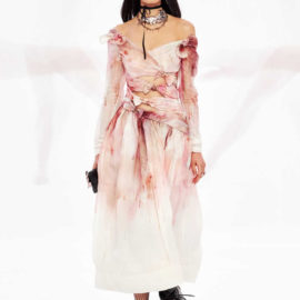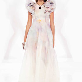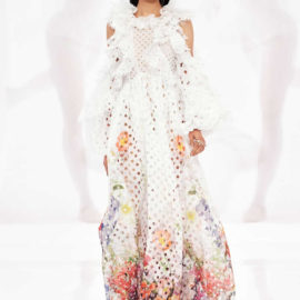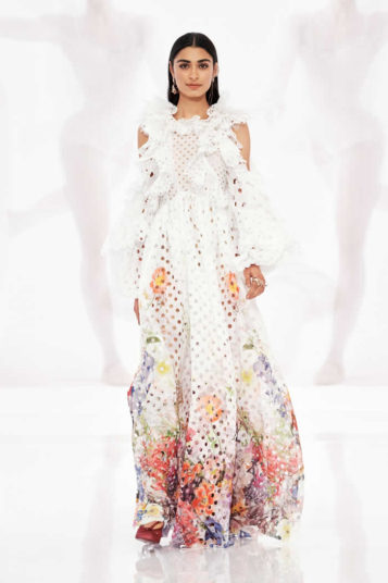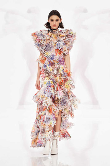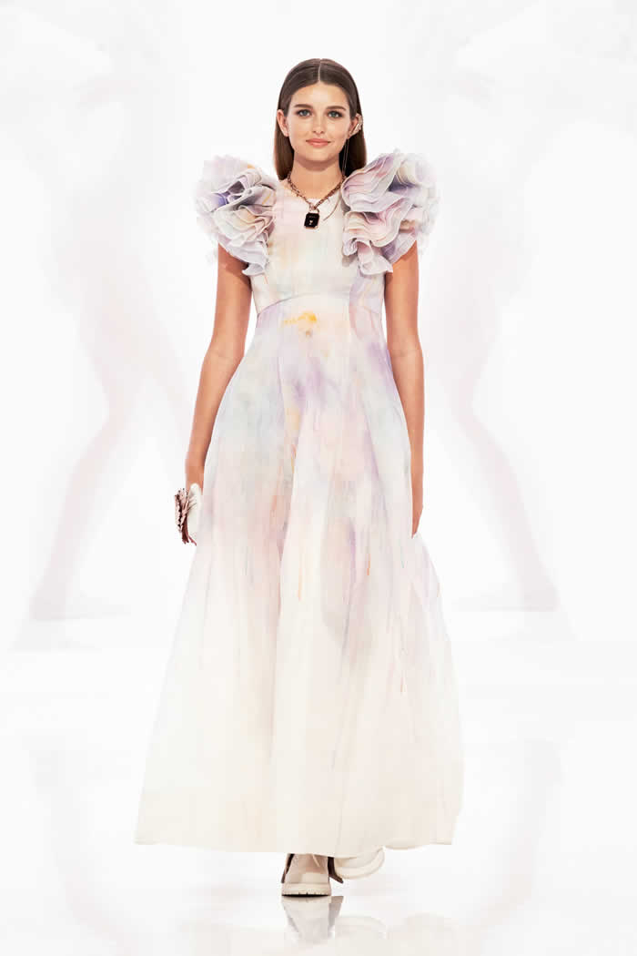 The designer’s seasonal florals also came with a more graphic feel — she collaborated with photographer Pierre Toussaint and florist Saskia Havekes to capture the blooms before digitally printing them atop new dreamy dresses.