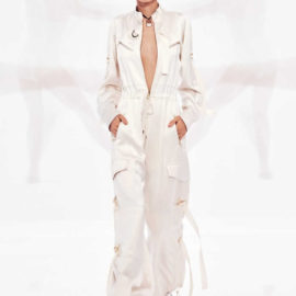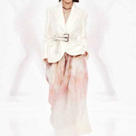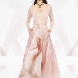In the past, the designer had grounded more fanciful, girly tops with denim; her new pairings felt fresh as ever for spring. “Our girl — she is sexy and in-tune with her femininity but she has strength and is an opinionated person who knows what she likes. Being able to bring that kind of strength to feminine pieces is fun,” she said.