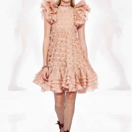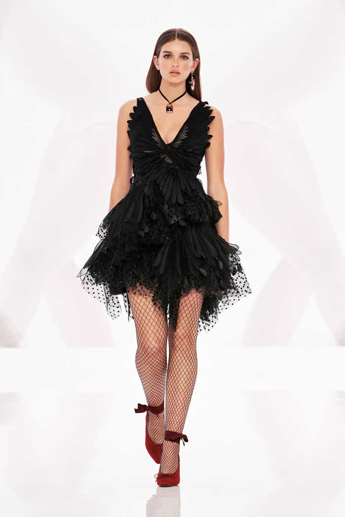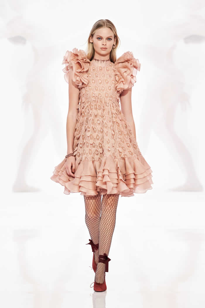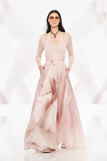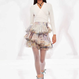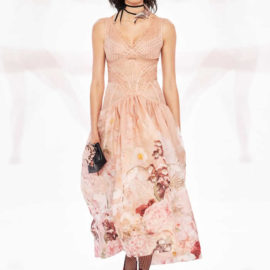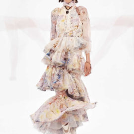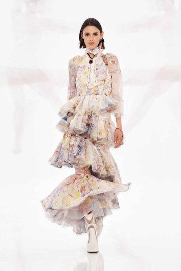 Their elegance and fluidity of movement inspired floaty silhouettes while an uptick of city-appropriate garments played to off-duty looks. The collection upheld the feminine, playful spirit upon which Zimmermann built her label (like a blush wrap-top with a long, ethereal skirt with ballet dancer splashed across, or pretty, printed dresses with voluminous, tiered layers and sleeves and laser-cut petals), but spring also offered a more edgy look.