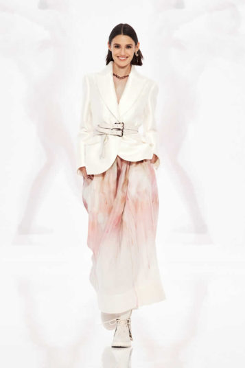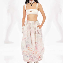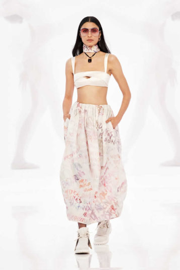 Meanwhile, a poem by author Sophie Lee was turned into a graffiti style print on full skirts, paired with little bra tops and bodysuits. The juxtaposition came across exactly how Zimmermann and her team aspired it to, offering just enough signature femininity with a modern spin.