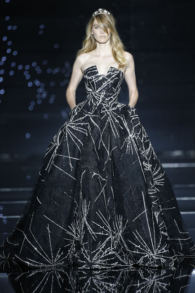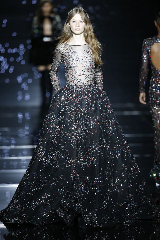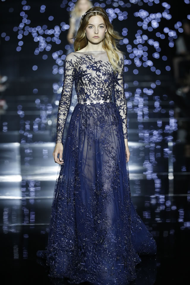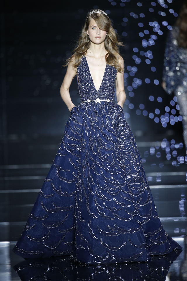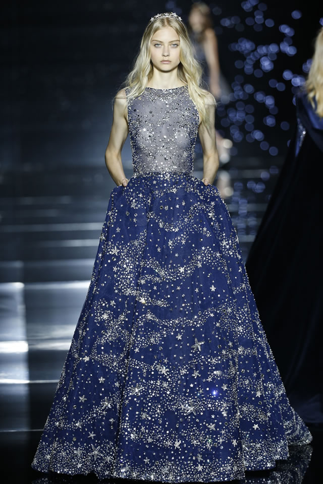 It was a starry, starry night at Zuhair Murad’s fall couture show. Given the designer’s trademark all over crystal embroideries it was probably just a matter of time before he turned to the sky for inspiration.