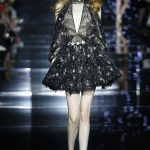 “I have a big telescope in my house and I see a lot of things. I love the mystery,” he said backstage before showing the collection, which was built on a series of familiar red-carpet silhouettes ranging from short tutu dresses to sexy columns and long gowns with flaring skirts. They were covered with a sparkling cosmic dust created from sequins, crystals and beads as well as a galactic-type print that was re-embroidered for extra twinkle.