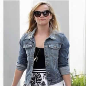 Reese Witherspoon was photographed wearing Fidelity Denim today in Los Angeles! The blonde beauty paired the Ryder jacket in Exile Destruct with her floral sundress for a flirty Spring look.