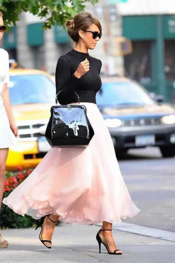 Neutral shades like white, black, beige, tan, brown, gray and such may be timeless and go well with anything, but that doesn’t mean it has to be dull and boring. If your wardrobe consists of mostly neutrals, simply spice them up with bold colored ensembles. Like Kim, make your corporate button down shirt festive by teaming it with a red full skirt that will look chic for spring parties. Or, think of wearing unexpected color combinations like red and pink, pink and orange, purple and yellow, blue and green and such that can make your spring style more creative and feminine.