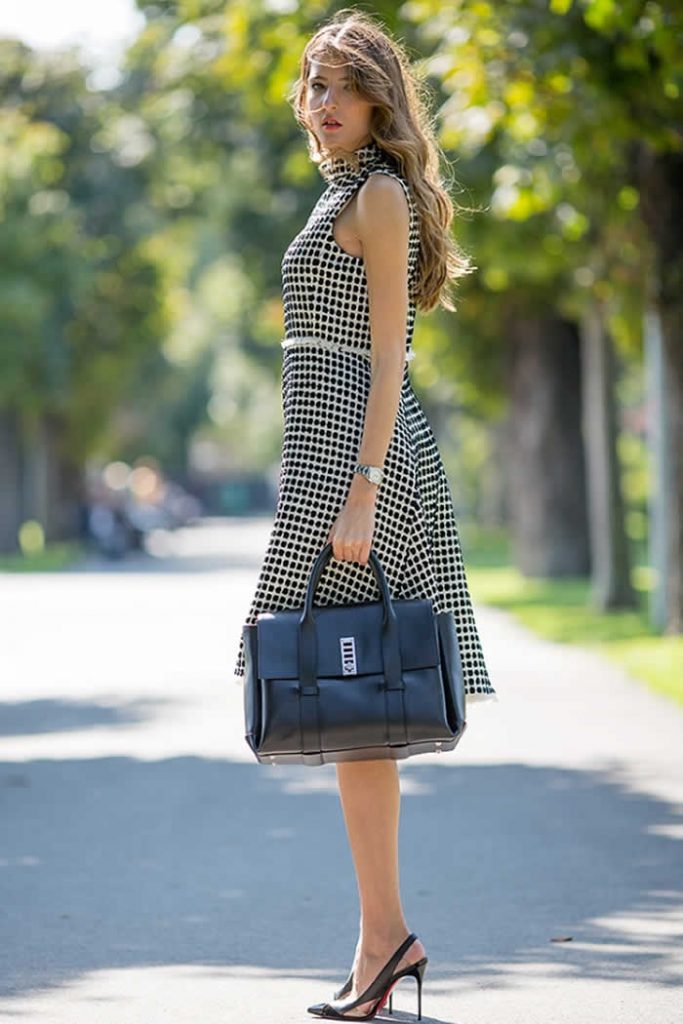 Though resolutions make us aware of what we want to create in our lives next, dress in an accomplished manner to make your goals look more realistic. Like fashion blogger Jennifer Selmanovic, if you want a promotion on your corporate job, dress in a promoted manner as your style will help you get there when you dress as the end result. Remember, since your dress communicates and reflects the image you want to project, dress for your goals. If you want to look like a fashion blogger, dress in a statement-making or eccentric way like fashion blogger Nina Suess did wearing a dress and bomber jacket with her jeans.