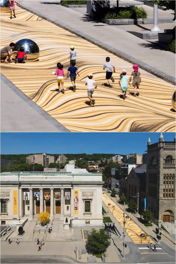 “Moving Dunes” was chosen following an annual call for proposals to install a large-scale work of art on the avenue of the museum. Follow the latest drawings and optical illusions from NOS on Instagram.