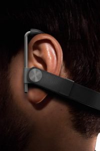 At first glance their leather and metal design alongside the 5-axis articulating earpiece looks remarkably like something that could have come out of the B&O PLAY catalog, a design devoid of any visible wires between the hand-stitched Napa leather band and the champagne anodized aluminum ear lock.