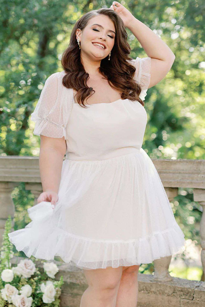 And if you’re on the hunt for plus-size short wedding dresses, you’ve come to the right place! While shopping for a plus-size wedding dress might feel daunting, the good news is that there are now plenty of options out there for any budget, style, and season.