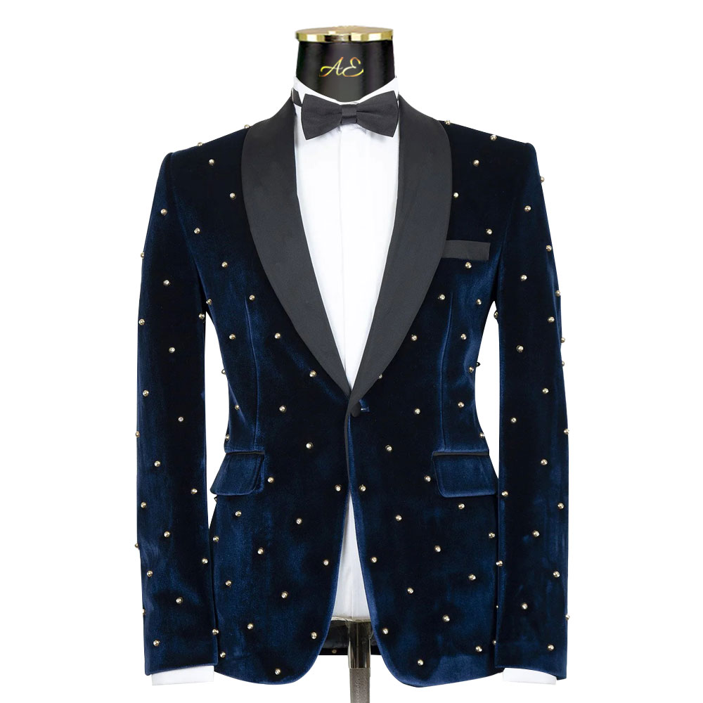 For those special occasions that call for a touch of luxury, a bespoke blue velvet tuxedo jacket is a standout choice. The rich texture and deep hue of the velvet exude opulence and elegance. Paired with a crisp white shirt, a black bowtie, and tailored trousers, this blazer will make you the center of attention at any black-tie event. Channel your inner James Bond and exude confidence in this timeless and sophisticated piece.