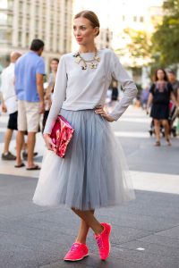 If you want to rock your favorite frilly dress in the daytime, casual sneakers make the look all the more practical.
