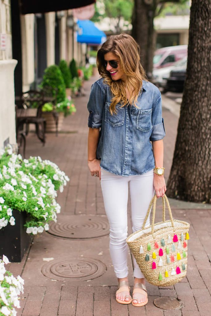 If you’re going to wear a sweater and leggings, make the combo interesting by layering a button-down dress underneath. The dress will cover all the areas you don’t want exposed.