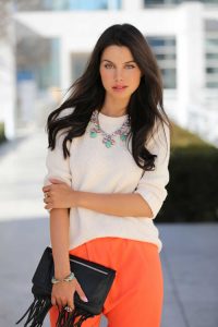 A chic black top paired with printed skirt and dressy heels also looks chic. Like fashion blogger Annabelle Fleur, think of brightly colored pieces that you can wear to your summer night out like a pair of chic pants that will keep your looks stylish and summer-inspired.