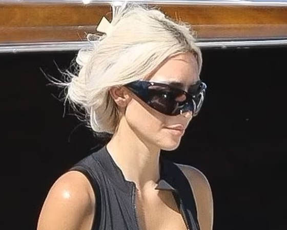 She dressed up for a sea trip in a black jumpsuit with a zippered front…