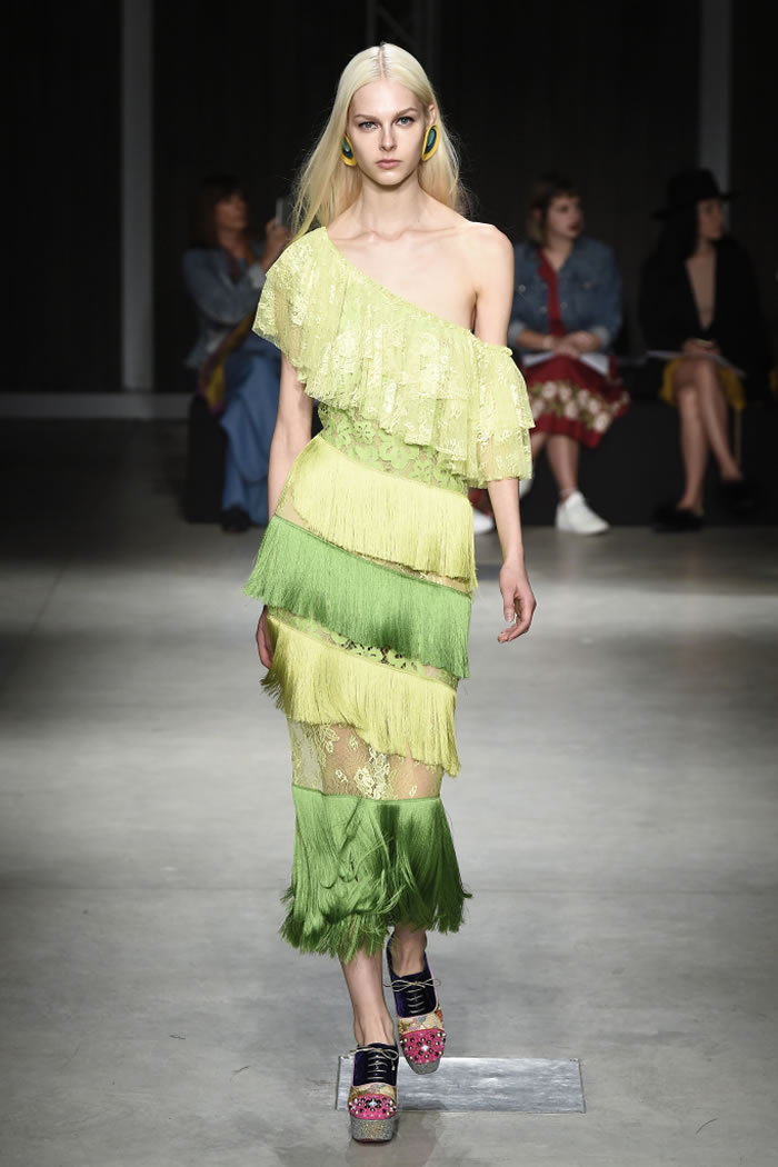 Fashion Designer Ermanno Scervino served up some elegant if lavish pieces crafted from duchess satin, silk georgette and waves of lace.