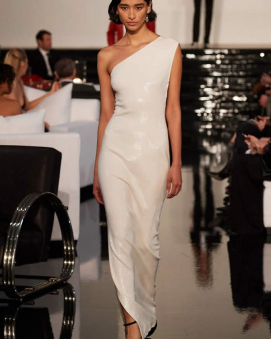 Givenchy collection with an assertive graphic verve. Black, white, and red were its dominant colours, with motifs that included dots, checks, preppy rugby stripes, and La Rocca’s giant apostrophes.