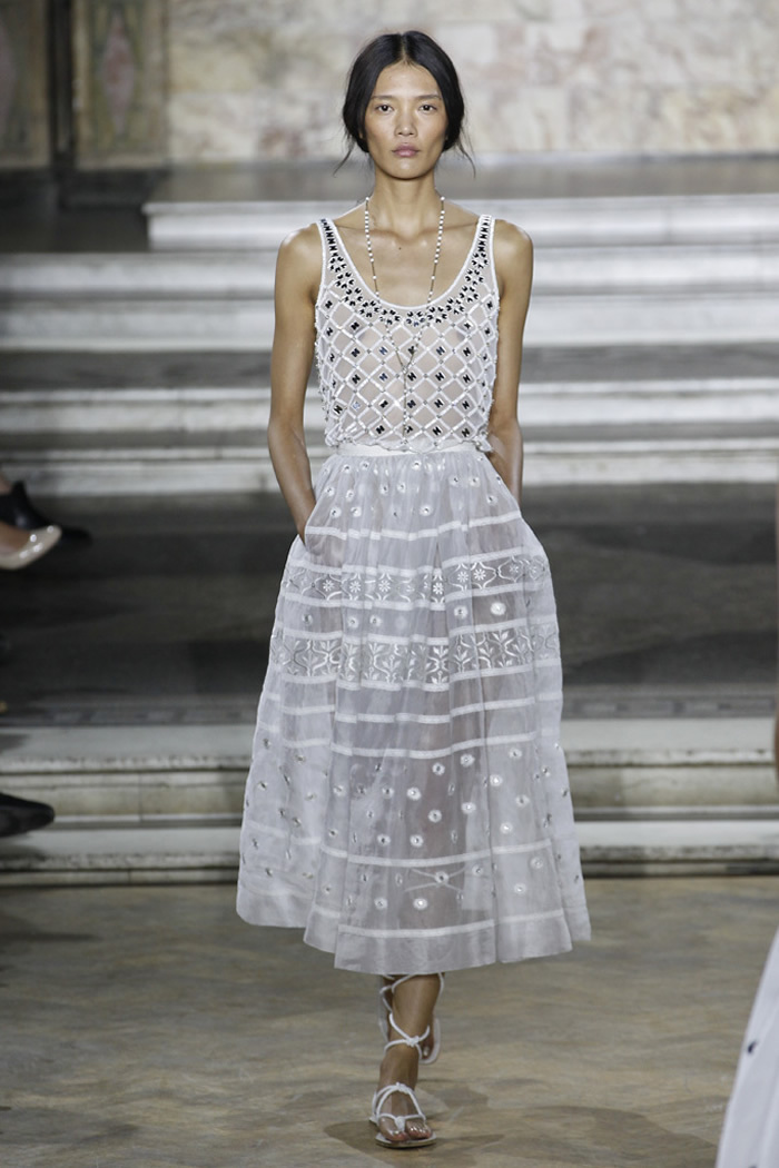 Skimpy tank shapes and racer-backs gave an athletic cast to David Koma’s spring collection, as…